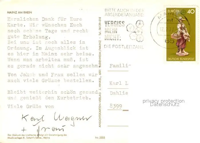 Mainz_Rhein Panorama Mainz Rhein postalisch gelaufen 1977 Erhaltung siehe scans [WerneD78] WernPID7