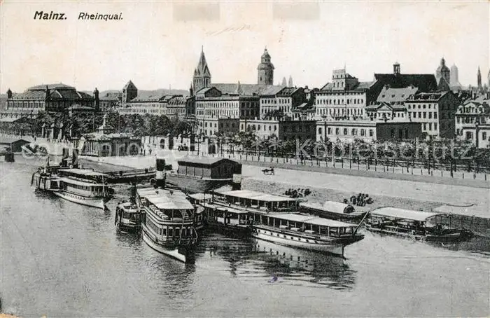 Mainz_Rhein Rheinansicht mit Stadthalle und Dom Dampfer Mainz Rhein postalisch nicht gelaufen 1921-1965 Erhaltung siehe scans [FriedD77] Frierer