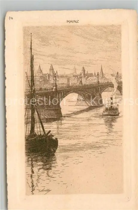 AK / Ansichtskarte Mainz_Rhein Rheinbruecke Zeichnung Kuenstlerkarte Mainz Rhein