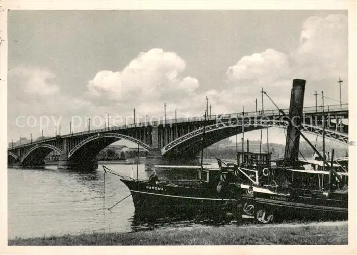 AK / Ansichtskarte Mainz_Rhein Rheinpartie an der Strassenbruecke Mainz Rhein