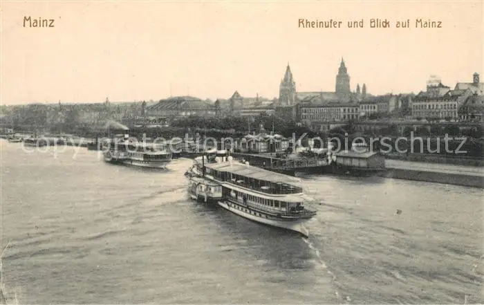 Mainz_Rhein Rheinufer und Blick auf Mainz Dampfer Mainz Rhein postalisch nicht gelaufen bis 1920 Erhaltung siehe scans [FriedD77] Frierer