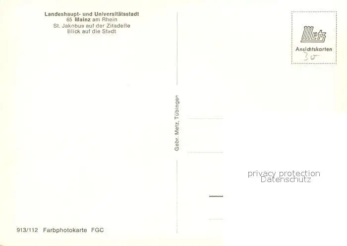 Mainz_Rhein St Jakobus auf der Zitadelle Stadtblick Mainz Rhein postalisch nicht gelaufen nach 1965 Erhaltung siehe scans [WerneD78] WernPID7