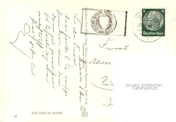 Mainz_Rhein Stadtbild mit Dom Mainz Rhein postalisch gelaufen 1940 Erhaltung siehe scans [FriedD77] Frierer