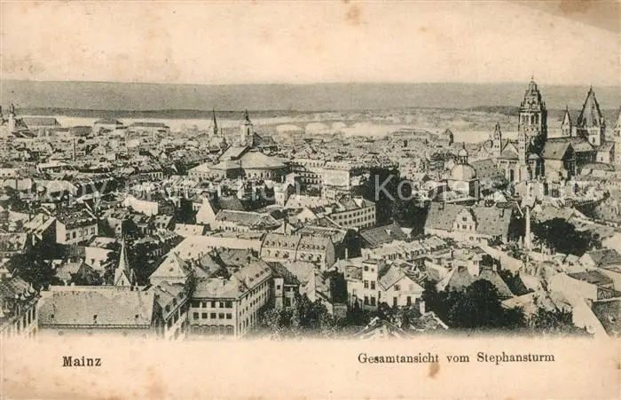 Mainz_Rhein Stadtbild mit Stephansturm Mainz Rhein postalisch gelaufen 1905 Erhaltung siehe scans [FriedD77] Frierer