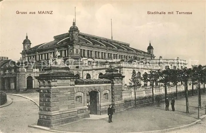 Mainz_Rhein Stadthalle mit Terrasse Mainz Rhein postalisch nicht gelaufen bis 1920 Erhaltung siehe scans [FriedD77] Frierer