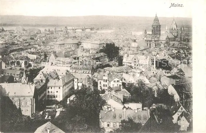 Mainz_Rhein Stadtpanorama mit Dom Mainz Rhein postalisch nicht gelaufen bis 1920 Erhaltung siehe scans [FriedD77] Frierer