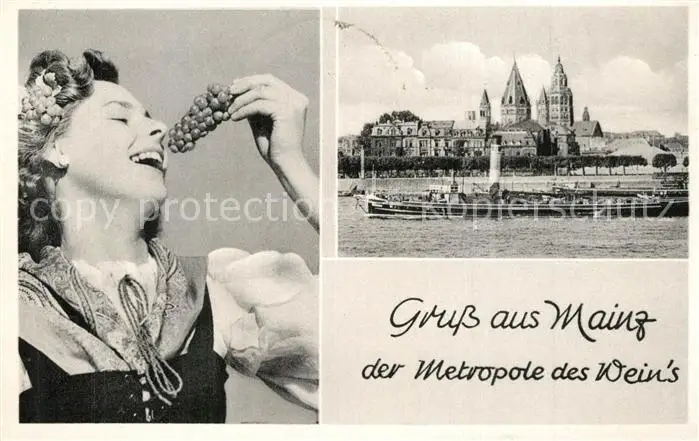 Mainz_Rhein Weinkoenigin Dampfer Dom Mainz Rhein postalisch gelaufen 1949 Erhaltung siehe scans [WerneD78] WernPID7