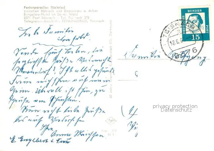 Maisried_Viechtach Bungalow Hotel im Bayerischen Wald Maisried Viechtach postalisch gelaufen 1963 Erhaltung siehe scans [FriedD77] Frierer