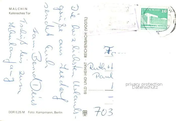 Malchin_Demmin Kalensches Tor Malchin Demmin postalisch gelaufen 1983 Erhaltung siehe scans [FriedD77] Frierer