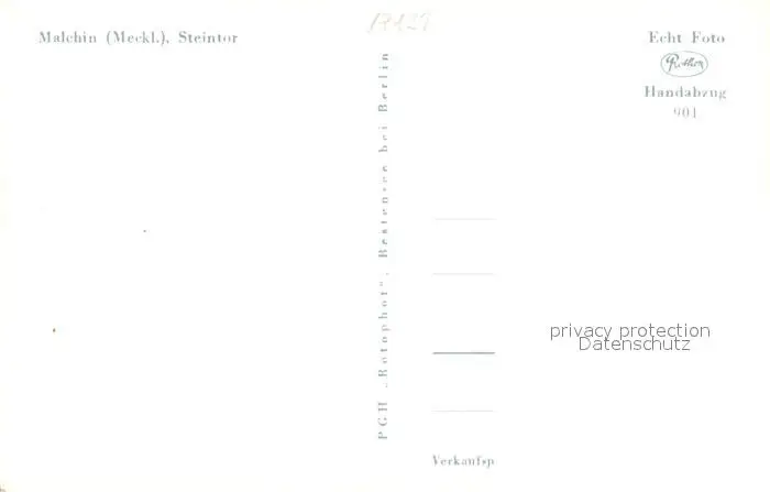 Malchin_Demmin Steintor Handabzug Malchin Demmin postalisch nicht gelaufen 1960 Erhaltung siehe scans [FriedD77] Frierer