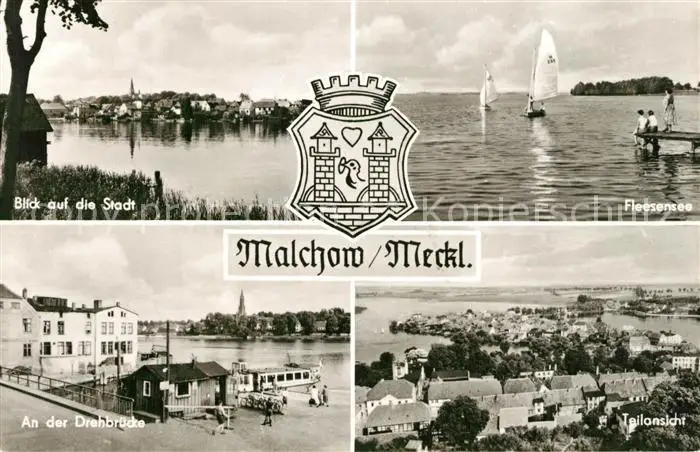 Malchow Blick auf die Stadt Drehbruecke Fleesensee Mecklenburgische Seenplatte Fliegeraufnahme Malchow postalisch gelaufen 1968 Erhaltung siehe scans [FriedD77] Frierer