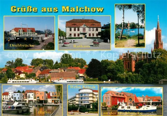 AK / Ansichtskarte Malchow Drehbruecke Rathaus Klosterkirche Hafen Fahrgastschiff Rehaklinik Malchow