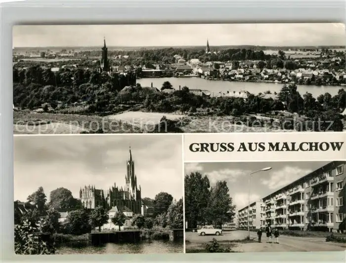 AK / Ansichtskarte Malchow Panorama Stadtkirche Wohnblocks Malchow