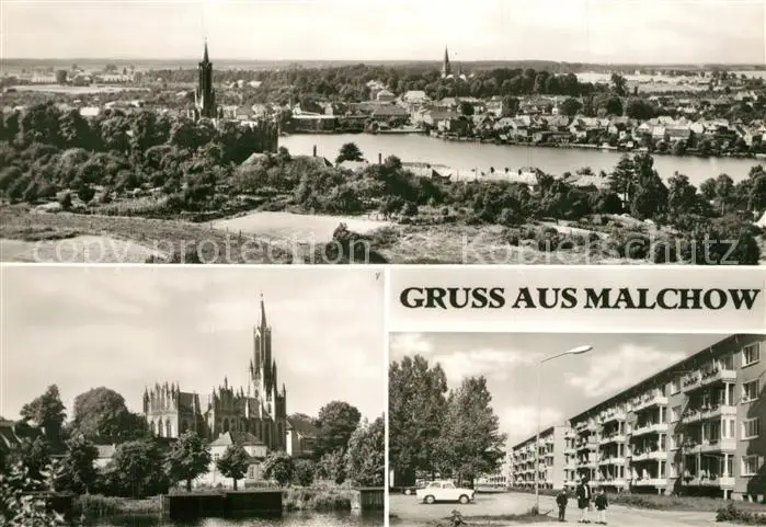 AK / Ansichtskarte Malchow Stadtpanorama mit Kloster Kirche Siedlung Wohnblocks Malchow