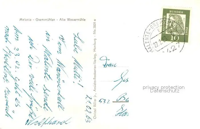 Malente-Gremsmuehlen Alte Wassermuehle Malente-Gremsmuehlen postalisch gelaufen 1963 Erhaltung siehe scans [KathaD81] Kathoren