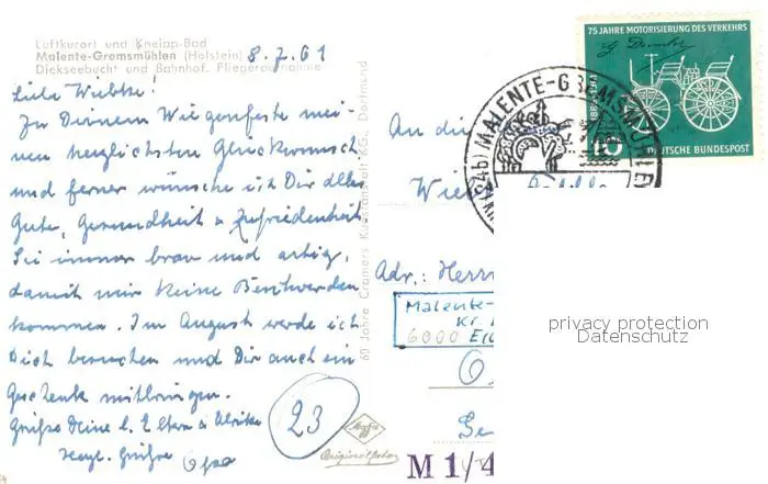Malente-Gremsmuehlen Dickseebucht Bahnhof Luftkurort Kneipp-Bad Holsteinische Schweiz Malente-Gremsmuehlen postalisch gelaufen 1961 Fliegeraufnahme Erhaltung siehe scans [FriedD77] Fliegeraufnahme Frierer