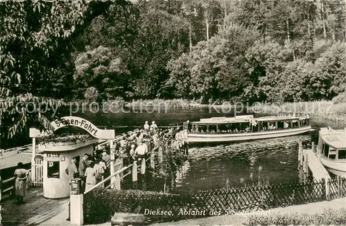Malente-Gremsmuehlen Dieksee Bootsanleger Abfahrt der 5-Seen-Fahrt Kneippheilbad Luftkurort Malente-Gremsmuehlen postalisch gelaufen 1961 Erhaltung siehe scans [FriedD77] Frierer