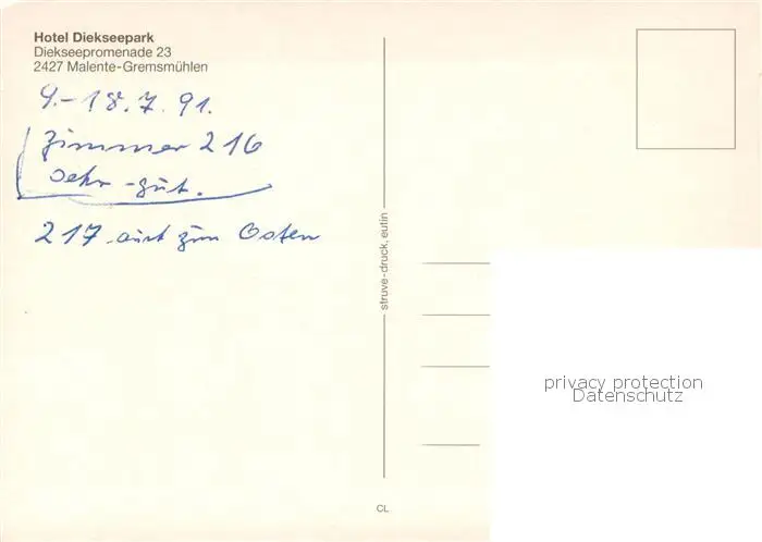 Malente-Gremsmuehlen Hotel Diekseepark Malente-Gremsmuehlen postalisch gelaufen 1991 Erhaltung siehe scans [WerneD78] WernPID7