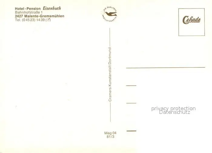 Malente-Gremsmuehlen Hotel-Pension Eisenhuth Malente-Gremsmuehlen postalisch nicht gelaufen nach 1965 Erhaltung siehe scans [LiesaD40] LiesID40