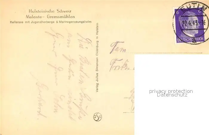 Malente-Gremsmuehlen Kellersee Jugendherberge Marinegenesungsheim Malente-Gremsmuehlen postalisch gelaufen 1943 Erhaltung siehe scans [KathaD81] Kathoren