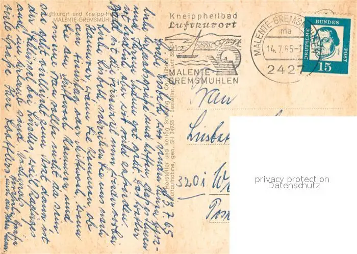 Malente-Gremsmuehlen Luftkurort Kneipp-Heilbad Holsteinische Schweiz Fliegeraufnahme Malente-Gremsmuehlen postalisch gelaufen 1965 Erhaltung siehe scans [FriedD77] Frierer