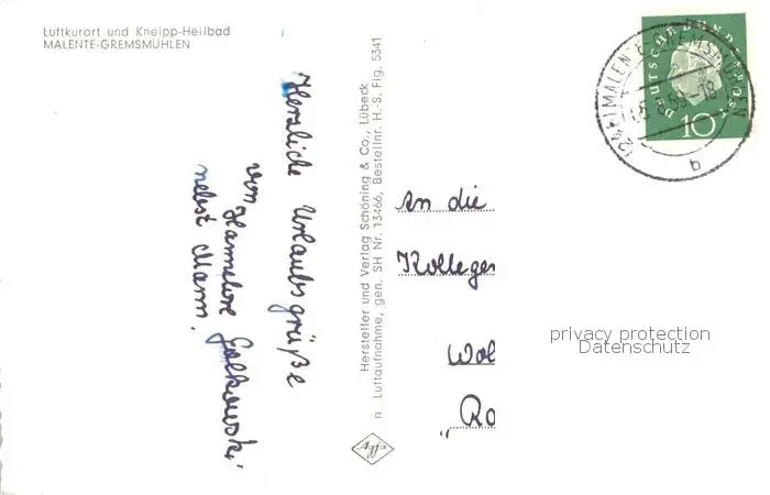 Malente-Gremsmuehlen Luftkurort Kneipp-Heilbad Holsteinische Schweiz Malente-Gremsmuehlen postalisch gelaufen 1959 Fliegeraufnahme Erhaltung siehe scans [FriedD77] Fliegeraufnahme Frierer