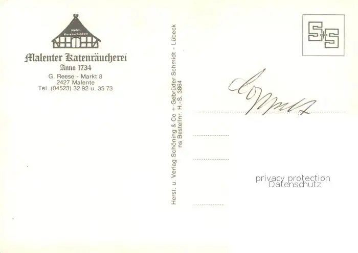 Malente-Gremsmuehlen Malenter Katenraeucherei Details Malente-Gremsmuehlen postalisch nicht gelaufen nach 1965 Erhaltung siehe scans [WerneD78] WernPID7