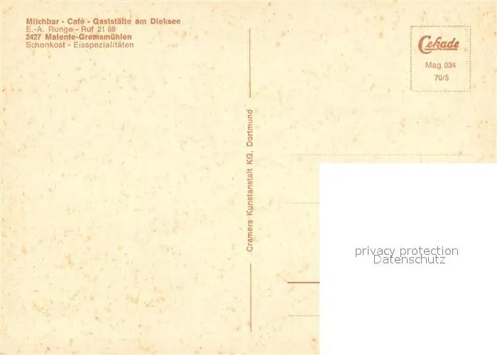 Malente-Gremsmuehlen Milchbar Café Gaststaette am Dieksee Malente-Gremsmuehlen postalisch nicht gelaufen 1970 Erhaltung siehe scans [FriedD77] Frierer