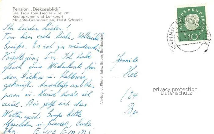 Malente-Gremsmuehlen Pension Dieckseeblick Liegewiese Diecksee Holsteinische Schweiz Malente-Gremsmuehlen postalisch gelaufen 1959 Erhaltung siehe scans [FriedD77] Frierer