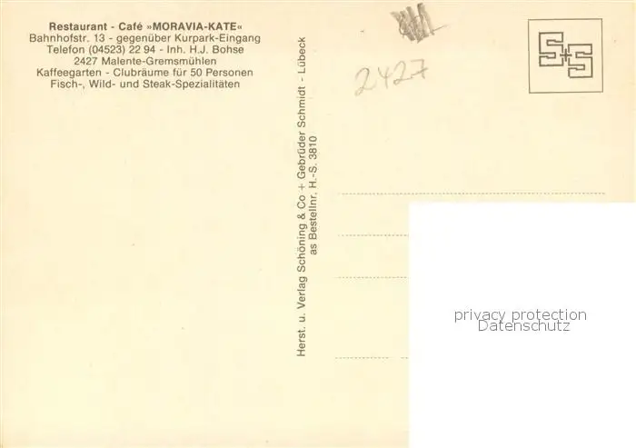 Malente-Gremsmuehlen Restaurant Moravia Kate Gastraeume Bar Malente-Gremsmuehlen postalisch nicht gelaufen nach 1965 Erhaltung siehe scans [FriedD77] Frierer