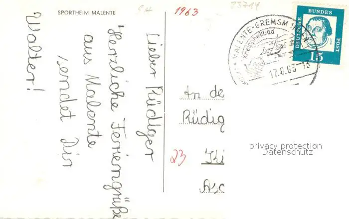 Malente-Gremsmuehlen Sportheim Malente Malente-Gremsmuehlen postalisch gelaufen 1963 Erhaltung siehe scans [WerneD78] WernPID7
