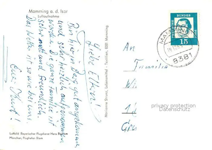 Mamming Kategorie Alte Ansichtskarten Postkarten bx74088 Mamming Fliegeraufnahme Mamming postalisch gelaufen 1963 Erhaltung siehe scans [PaolaD17]