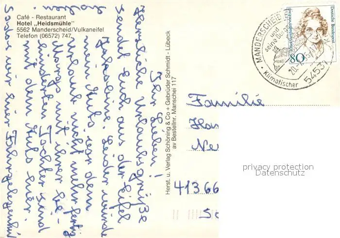 Manderscheid_Eifel Cafe-Restaurant-Hotel Heidsmuehle Manderscheid Eifel postalisch gelaufen 1995 Erhaltung siehe scans [LiesaD40] LiesID40