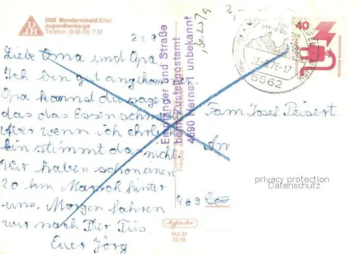 Manderscheid_Eifel Fliegeraufnahme Teilansicht m. Jugendherberge Manderscheid Eifel postalisch gelaufen 1976 Erhaltung siehe scans [LiesaD40] LiesID40