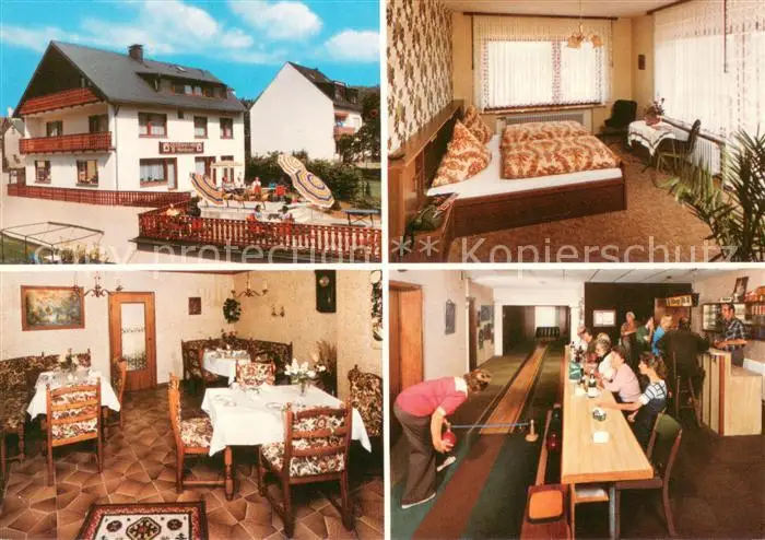 AK / Ansichtskarte Manderscheid_Eifel Gaestehaus Hill Gaestezimmer Gaststube Kegelbahn Manderscheid Eifel