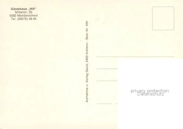 Manderscheid_Eifel Gaestehaus Hill Gaestezimmer Gaststube Kegelbahn Manderscheid Eifel postalisch nicht gelaufen nach 1965 Erhaltung siehe scans [WerneD78] WernPID7