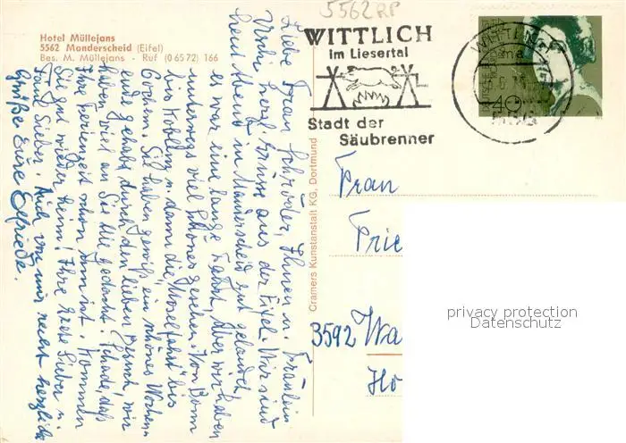 Manderscheid_Eifel Hotel Muellejans Gartenansicht Manderscheid Eifel postalisch gelaufen 1975 Erhaltung siehe scans [LiesaD40] LiesID40