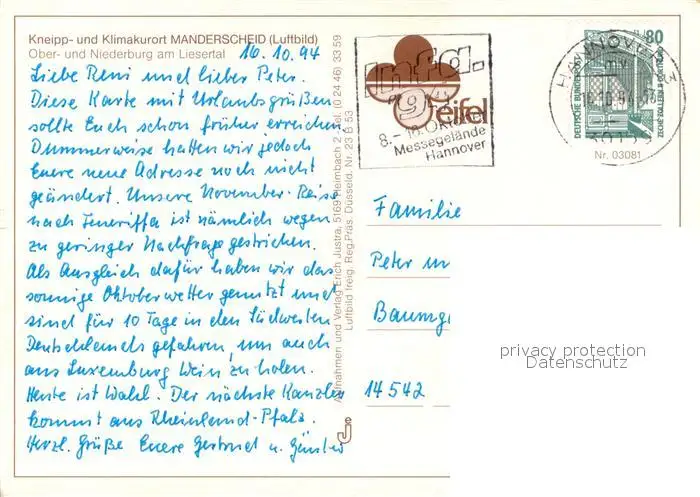 Manderscheid_Eifel Ober und Niederburg am Liesental Fliegeraufnahme Manderscheid Eifel postalisch gelaufen 1994 Erhaltung siehe scans [WerneD78] WernPID7