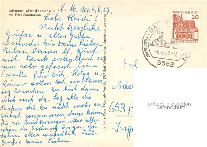 Manderscheid_Eifel Teilansichten m. Eifel Sanatorium Manderscheid Eifel postalisch gelaufen 1967 Erhaltung siehe scans [LiesaD40] LiesID40