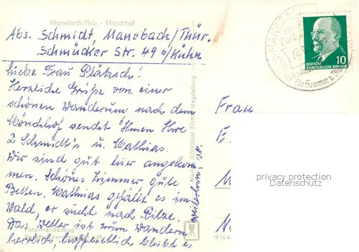 Manebach Moenchhof Manebach postalisch gelaufen nach 1965 Erhaltung siehe scans [WerneD78] WernPID7
