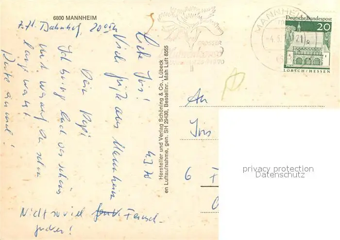 Mannheim Fliegeraufnahme Mannheim postalisch gelaufen 1921-1965 Erhaltung siehe scans [KathaD81] Kathoren