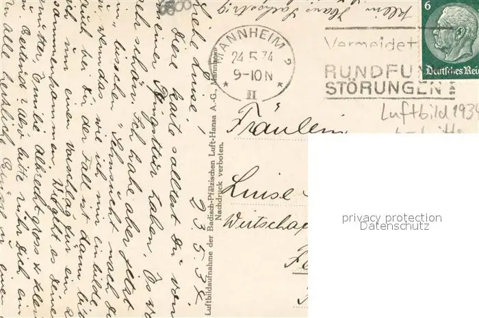 Mannheim Fliegeraufnahme Mannheim postalisch gelaufen 1934 Erhaltung siehe scans [FriedD77] Frierer