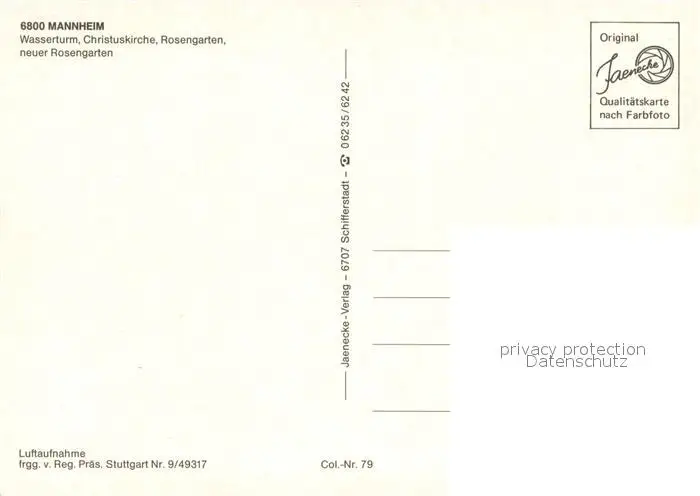 Mannheim Fliegeraufnahme mit Wasserturm Christuskirche Rosengarten und neuer Rosengarten Mannheim postalisch nicht gelaufen nach 1965 Erhaltung siehe scans [WerneD78] WernPID7