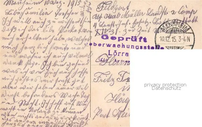 Mannheim Partie aus dem Friedrichspark Pruefstempel Mannheim postalisch gelaufen 1915 Feldpost Erhaltung siehe scans [FriedD77] Feldpost Frierer