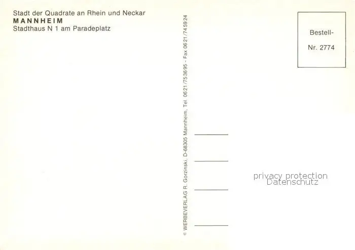 Mannheim Stadthaus Paradeplatz Mannheim postalisch nicht gelaufen nach 1965 Erhaltung siehe scans [KathaD81] Kathoren