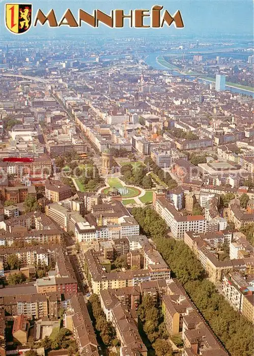 AK / Ansichtskarte Mannheim_Rhein Altstadt mit Wasserturm und Augusta Anlage Fliegeraufnahme