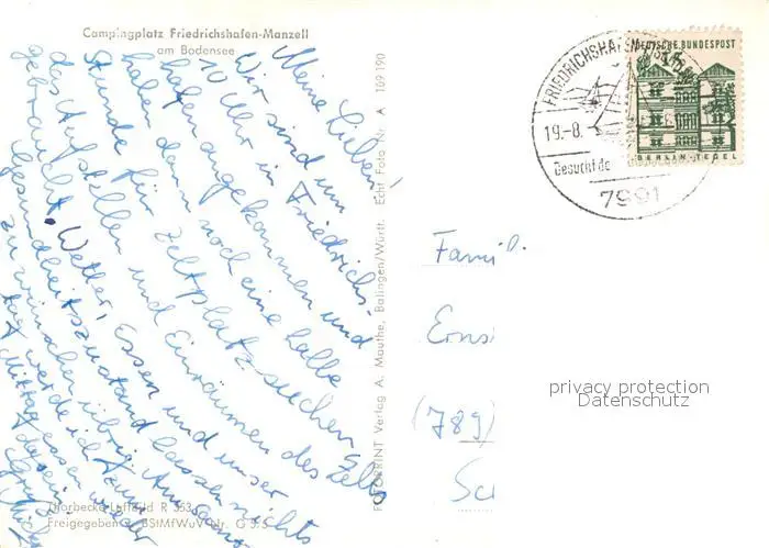 Manzell Kategorie Alte Ansichtskarten Postkarten bx65312 Manzell Campingplatz am Bodensee Fliegeraufnahme Manzell postalisch gelaufen 1965 Erhaltung siehe scans [WerneD78]
