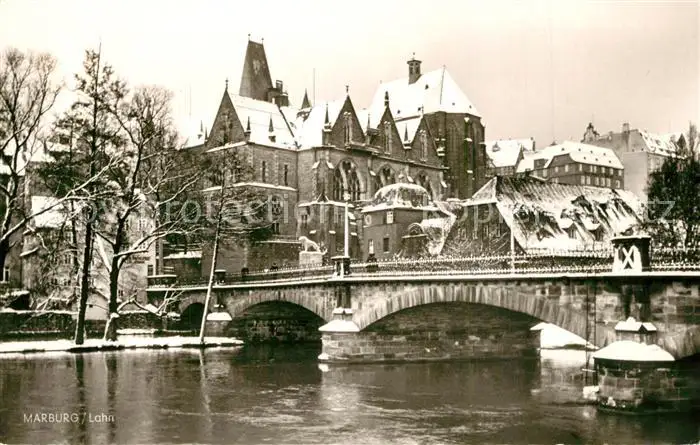 AK / Ansichtskarte Marburg_Lahn Lahnbruecke Universitaet im Winter Marburg_Lahn