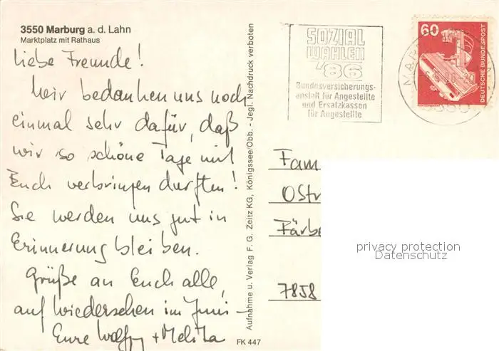 Marburg_Lahn Marktplatz Rathaus Marburg_Lahn postalisch gelaufen 1986 Erhaltung siehe scans [LiesaD40] LiesID40