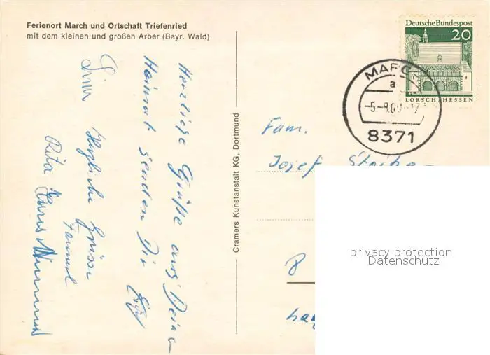 March Niederbayern Kategorie Alte Ansichtskarten Postkarten bx54829 March_Niederbayern Triefenried kleine grosse Arber March Niederbayern postalisch gelaufen nach 1965 Erhaltung siehe scans [NatalD47]